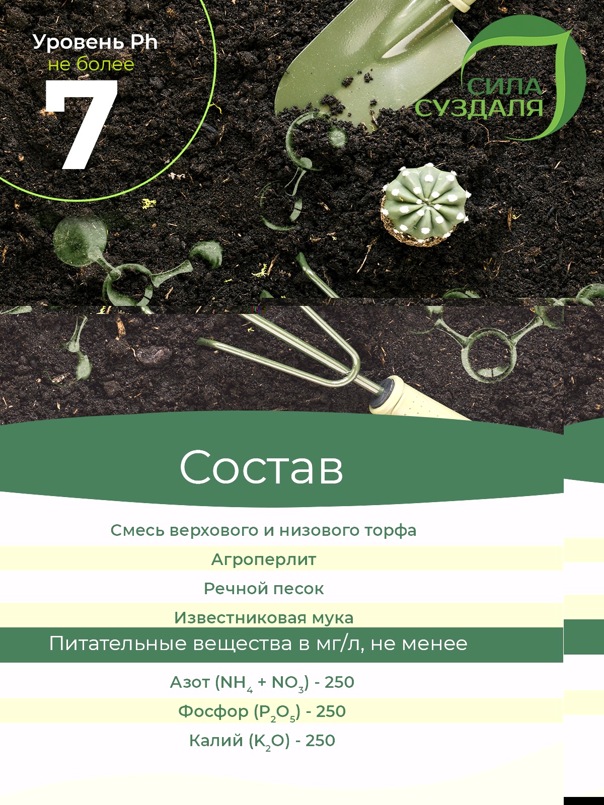 Состав: смесь верхового и низинного торфа, агроперлит, речной песок, известняковая мука. Питательные вещества.