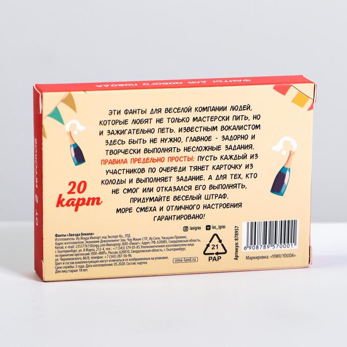 Игра для компании "Фанты Звезда Бокала" 20 карт